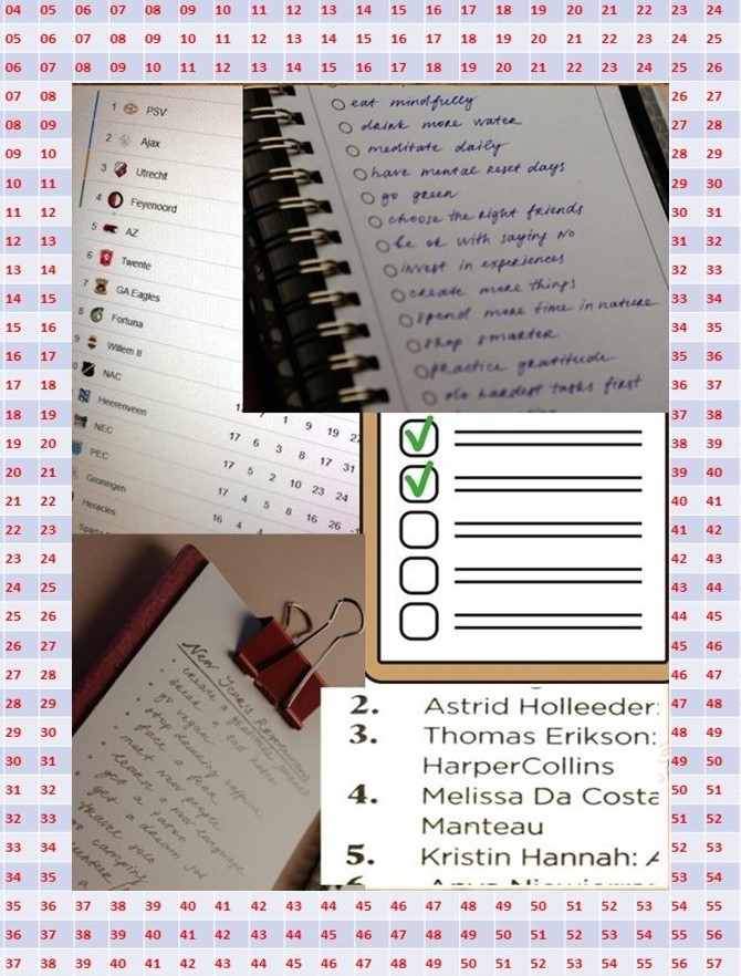 NB Wil je de lijsten op een pdf toegestuurd krijgen, mail dan naar koetjwm@gmail.com.
